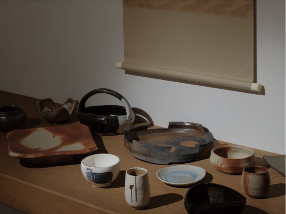 金重素山先生は当代第一の茶陶の名手として、作為の奥深く、無碍なるもののあるべき姿に挑戦され続けました。また、言わずと知れた食通であり、その拘りは当然のごとく食の器へも傾けられました。没後30年を経た今、改めてその広く大きく温かみのある手わざに本当の豊かさを感じさせていただきます。そして、言葉や文章にはし得ないその土魂は長男である愫先生、孫である多門先生へと染み入りつつ、それぞれの花として開いているように存じます。この度は御三人の食の器を中心に酒器や茶陶まで、心ゆくまでゆっくりお愉しみいただきたく、ご案内申し上げます。